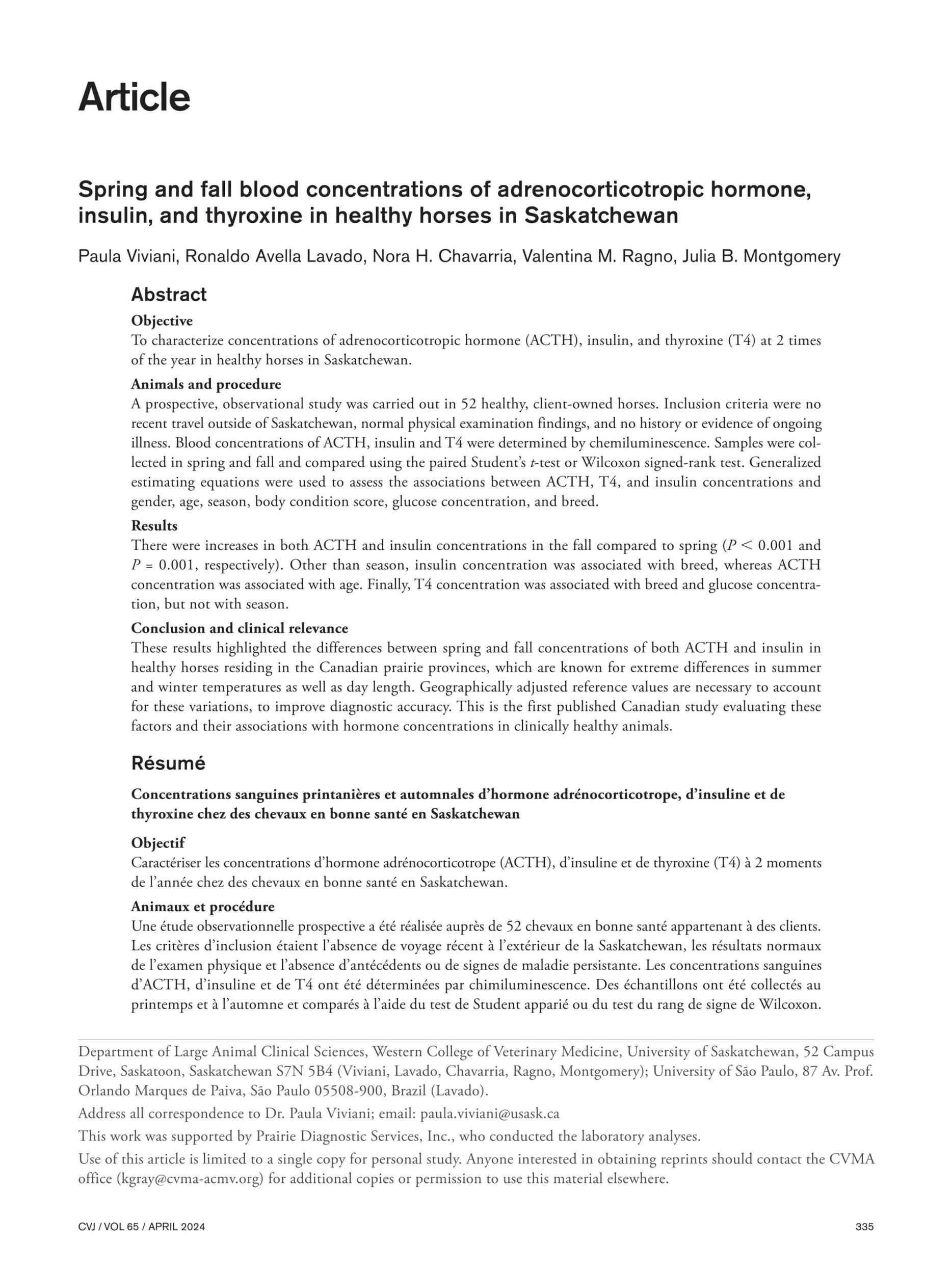 - Viviani. P. et al., Spring and Fall Blood Concentrations of Adrenocorticotropic Hormone, Insulin, and Thyroxine in Healthy Horses in Saskatchewan. Can Vet J. 2024.