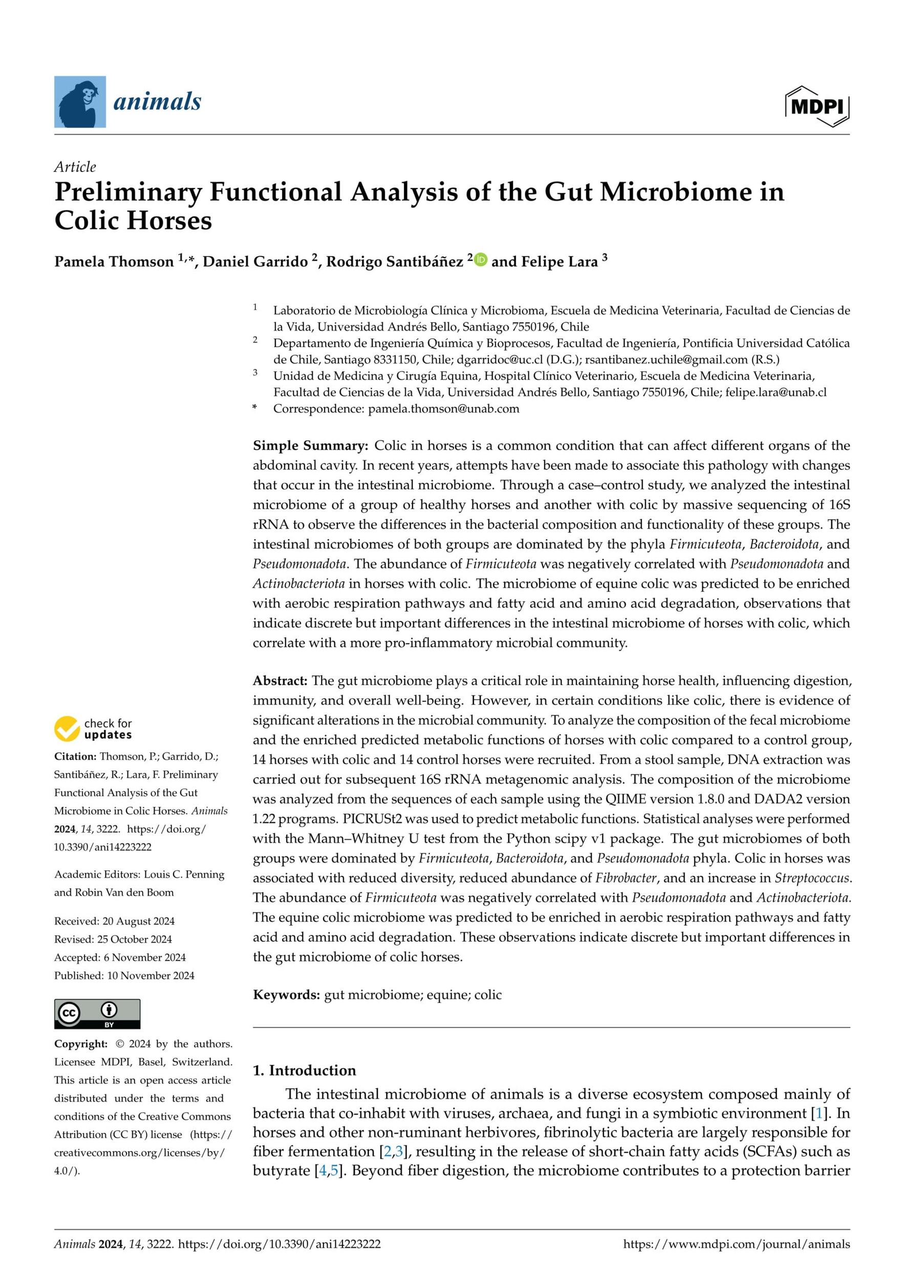 - Thomson. P. et al., Preliminary Functional Analysis of the Gut Microbiome in Colic Horses. Animals. 2024. View Summary