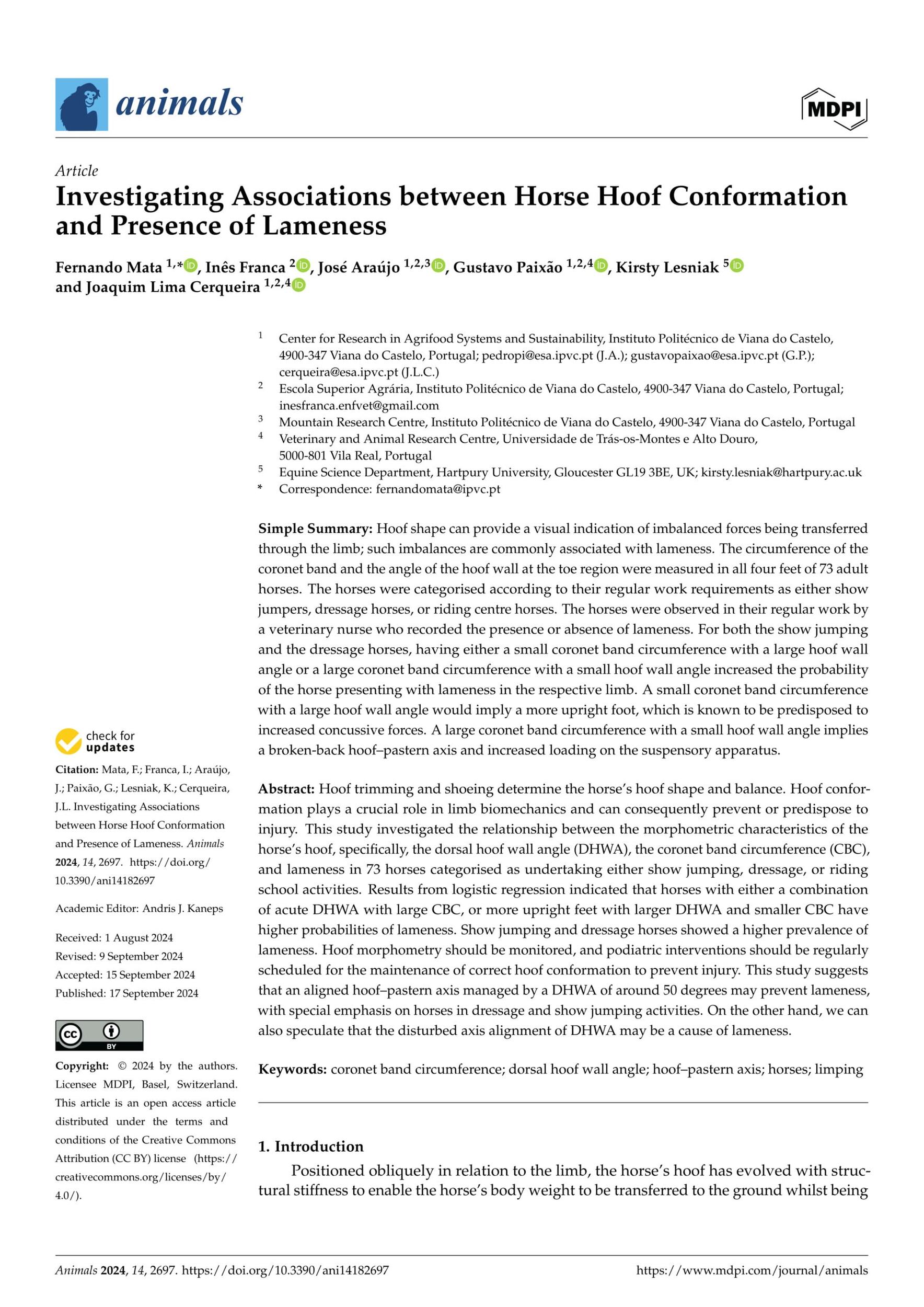 - Mata. F. et al., Investigating Associations between Horse Hoof Conformation and Presence of Lameness. Animals. 2024. View Summary