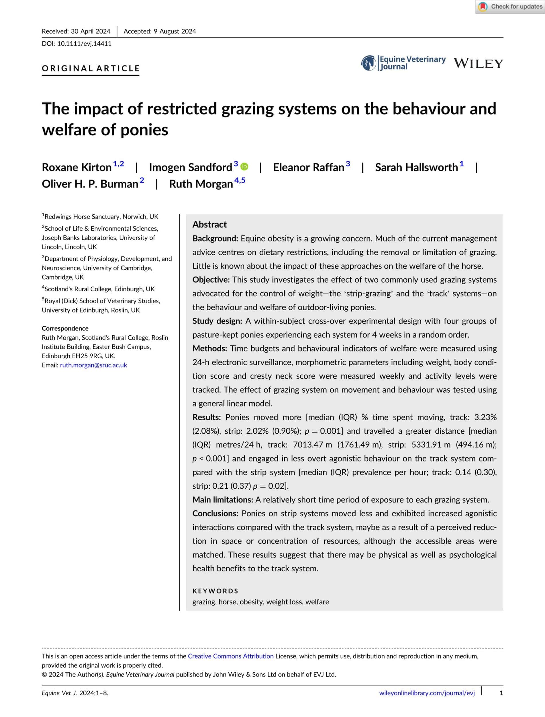 - Kirton. R. et al., The Impact of Restricted Grazing Systems on the Behaviour and Welfare of Ponies. Equine Veterinary Journal. 2024. View Summary