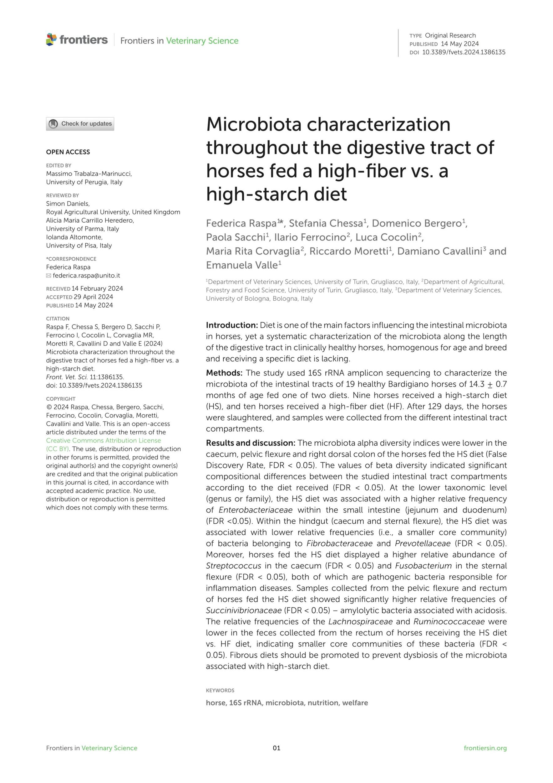 - Raspa. F. et al., Microbiota Characterization throughout the Digestive Tract of Horses Fed a High-Fiber vs. a High-Starch Diet. Frontiers in Veterinary Science. 2024. View Summary