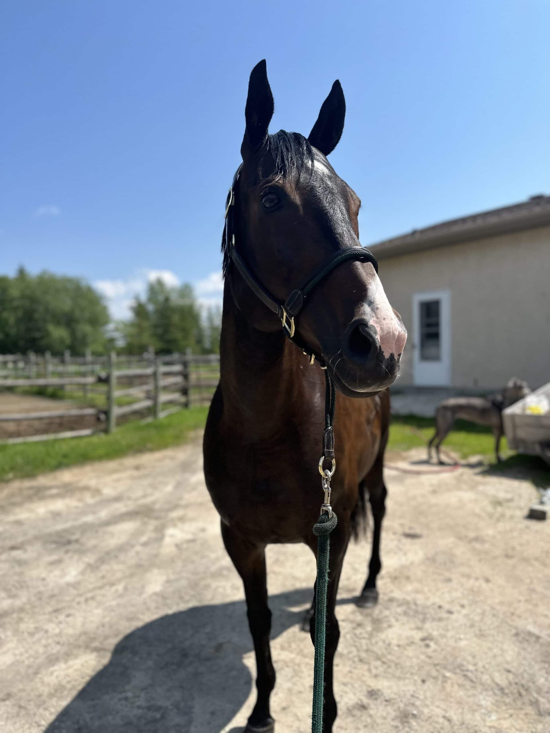 I have owned Moe for around 6 months now. He is a 7 year old OTTB and has been off the track for a bit over a year now. When I first got him, he had a dull coat, and was quite thin, despite having 24/7 access to great hay and a wonderful feed program.