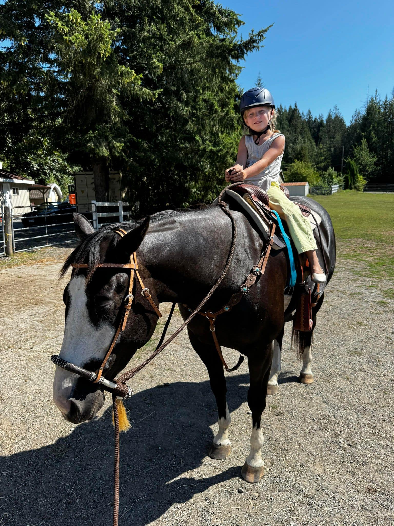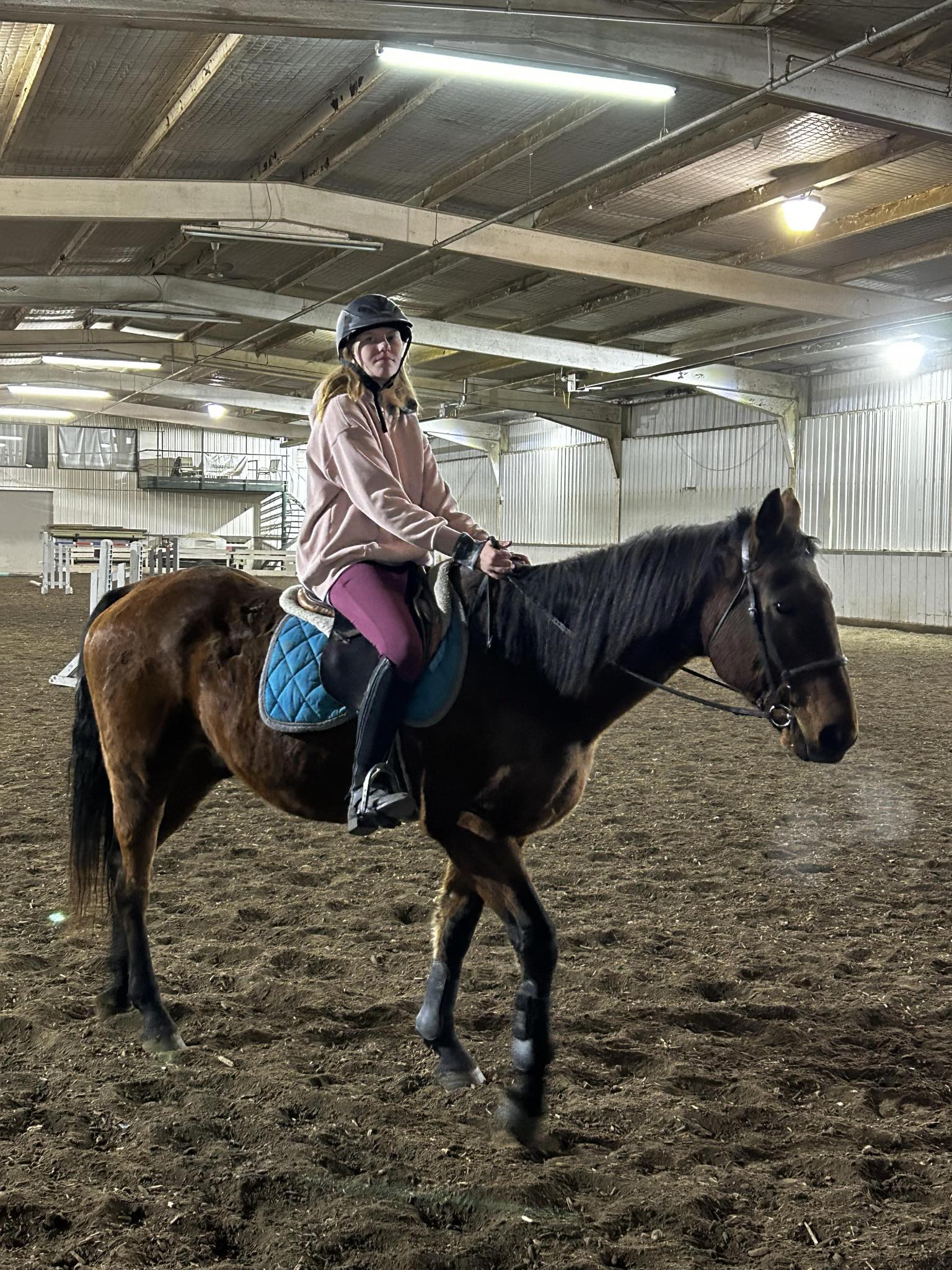 Her improving physical health has made it possible for us to finally address some of the training issues that we’ve struggled with, and she’s gone from a horse that constantly needed to be held back and following other more confident horses on trail rides to being able to cheerfully lead trails/go out alone on a loose rein at a slow jog.