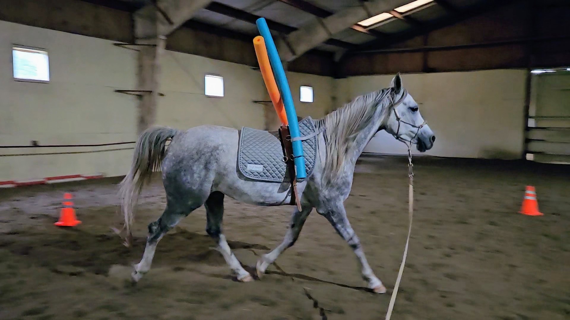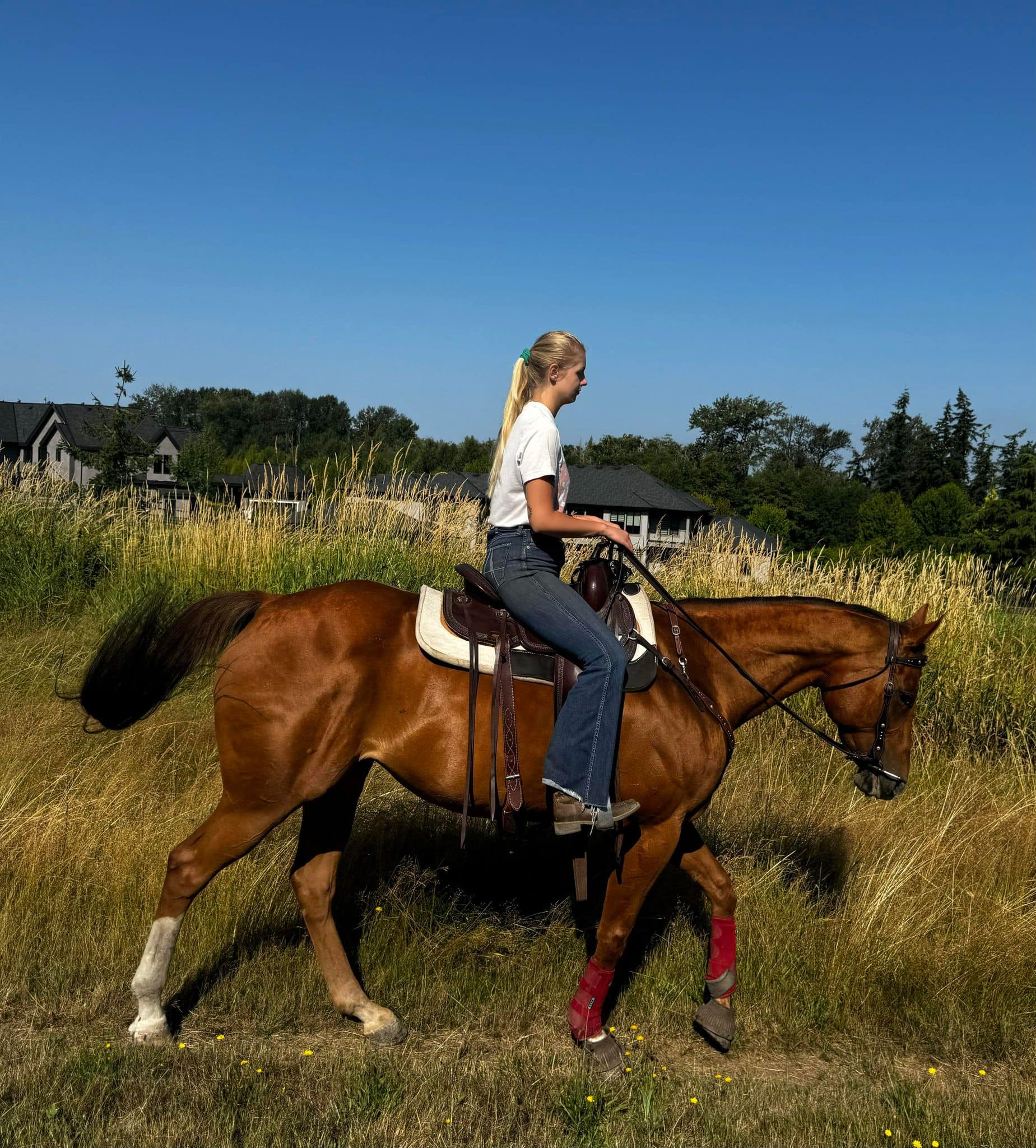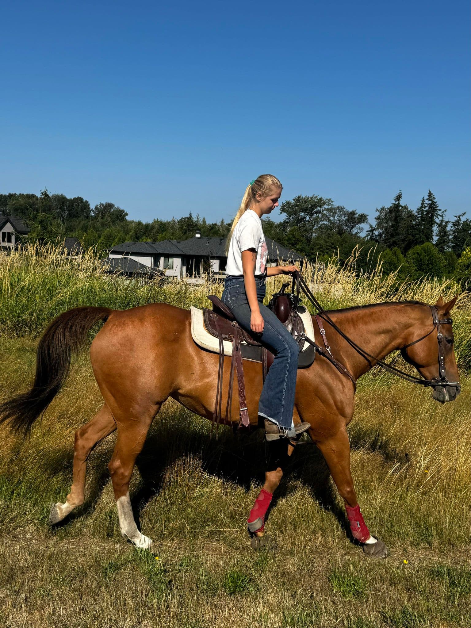 Popcorn has always struggled with building muscle and topline, and due to being pigeon toed she can be extremely clumsy. Being so off balanced and under muscles made her extremely strong on the trails, as she rushes when she feels unstable.