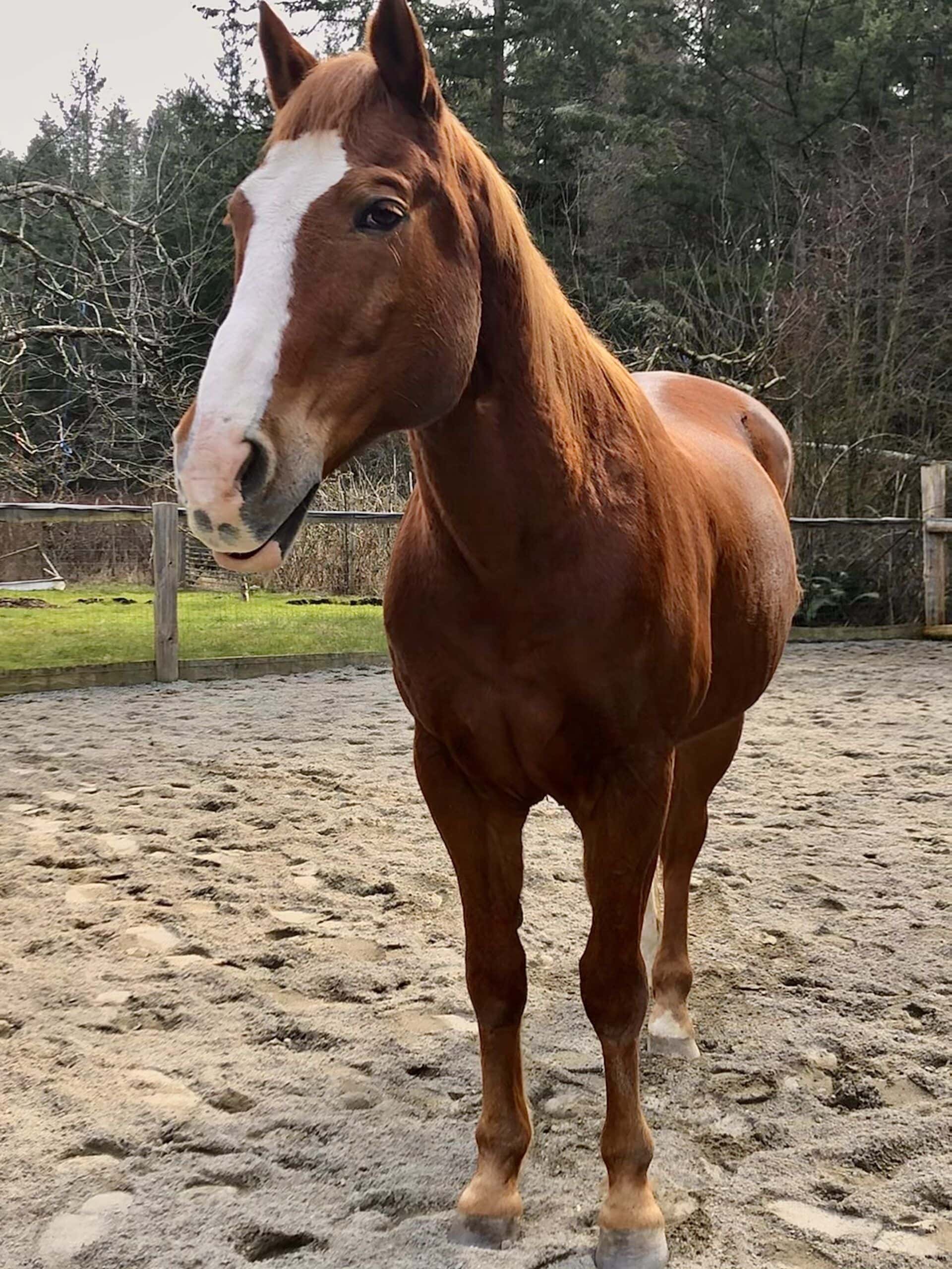 I acquired Reggie, an 8 year old OTTB mare, a year ago. She was in rough, neglected condition, eating a scant amount of grass hay as provided by the barn manager and not having had care of any other sort for a year. I’ve been feeding Reggie Omneity for a year, and I think the photos I’ve attached speak for themselves. She looks like a different horse.
