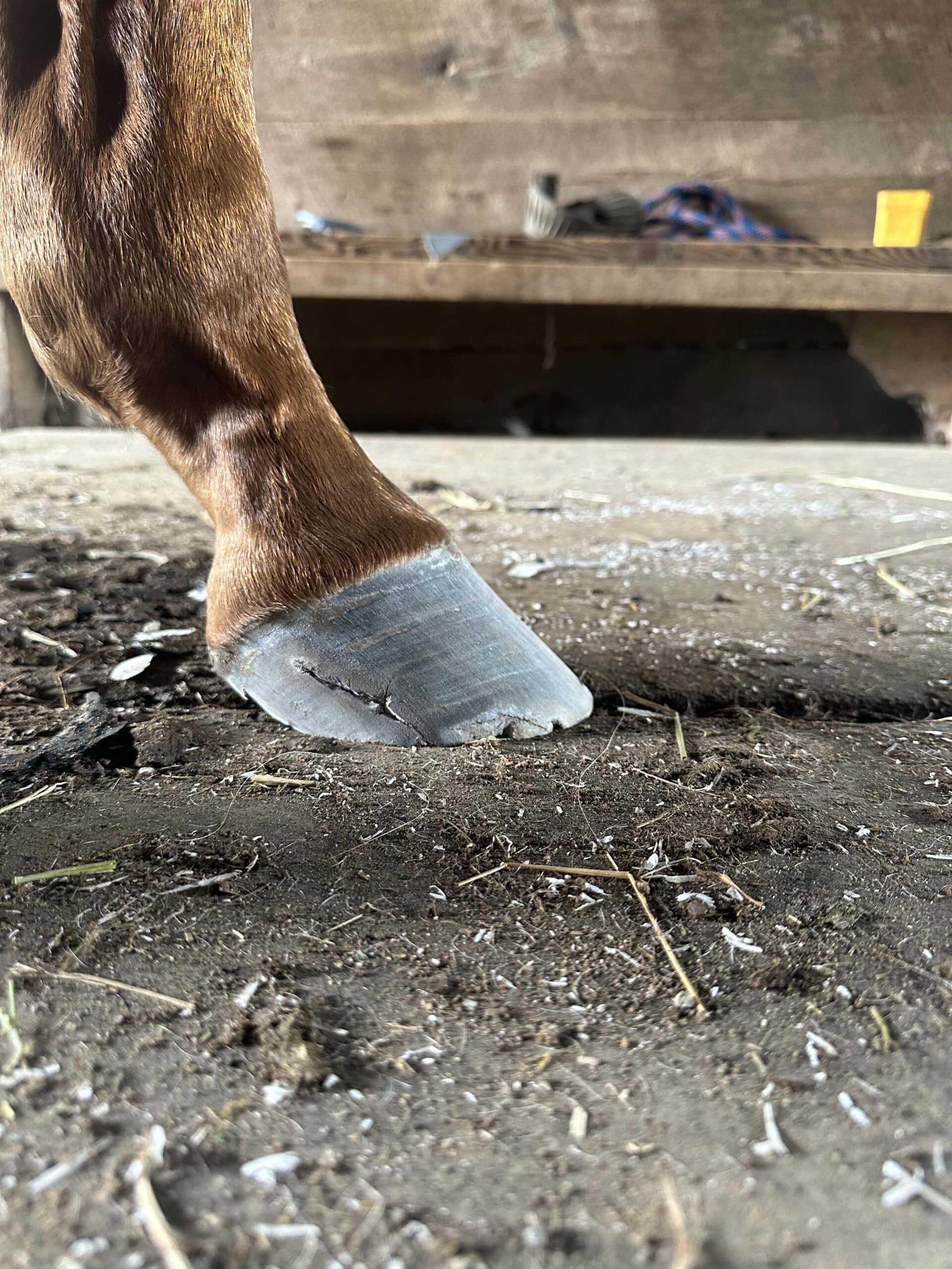 When my main competition horse developed a quarter crack, I wanted to be sure all of his nutritional needs were being met to encourage hoof growth. I ultimately decided on the Omenity pellets and have been nothing but impressed with how quickly his hooves have grown, how much stronger his hooves are, and how fast we were able to get the quarter crack grown out to the point where it was off of his coronet band. Photos are just 4 months apart.