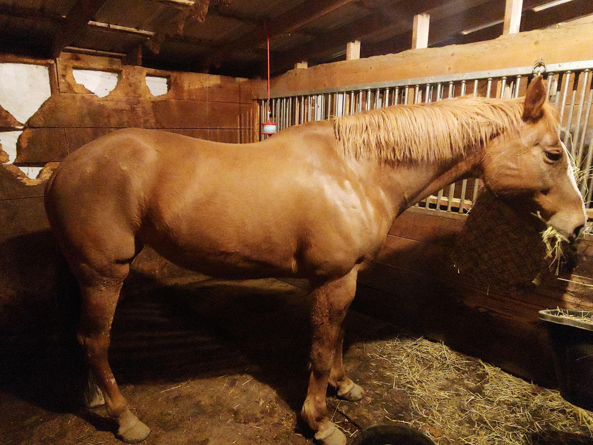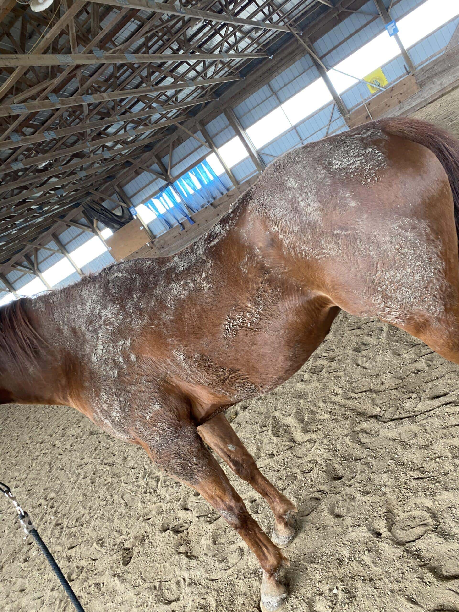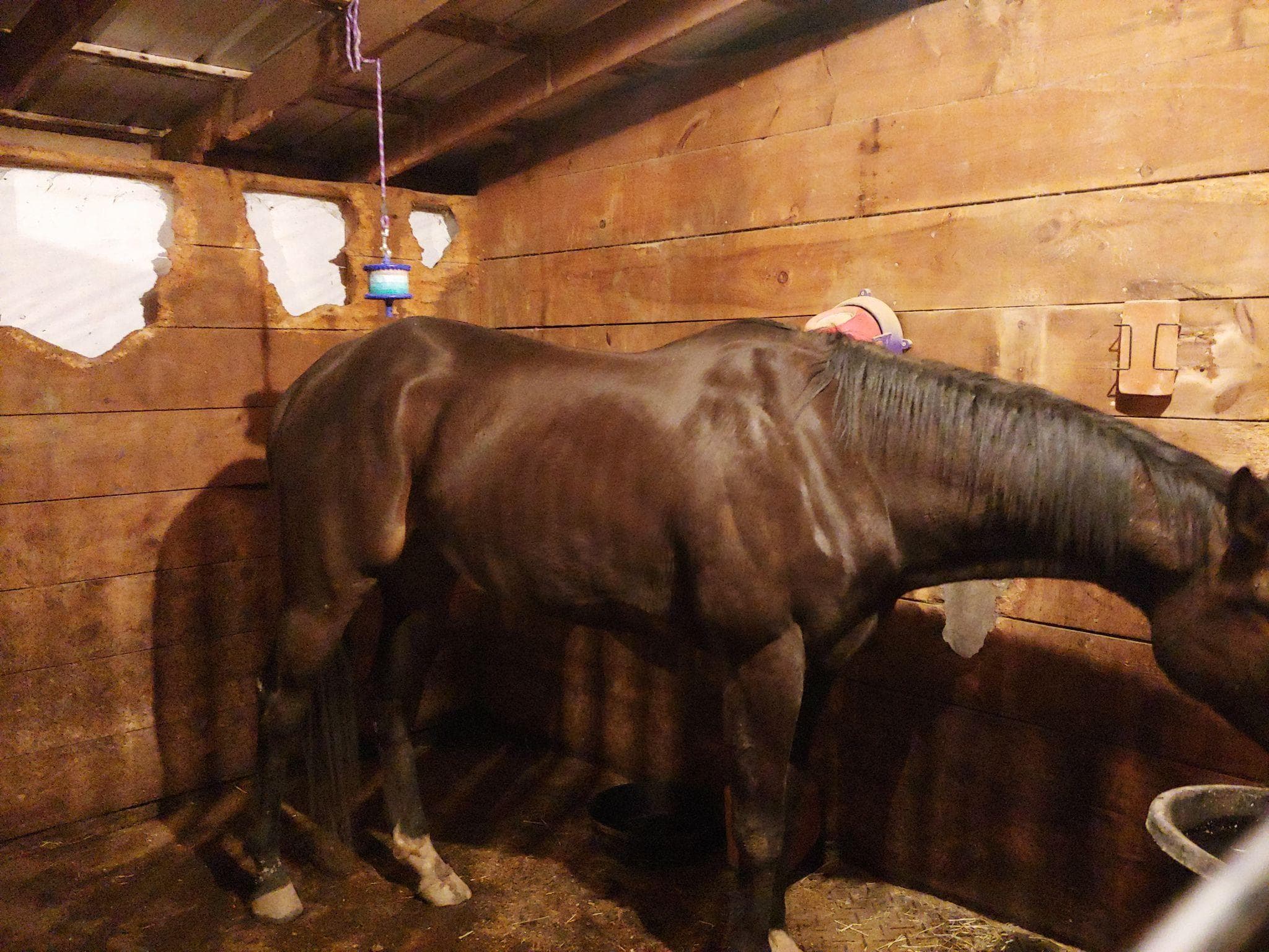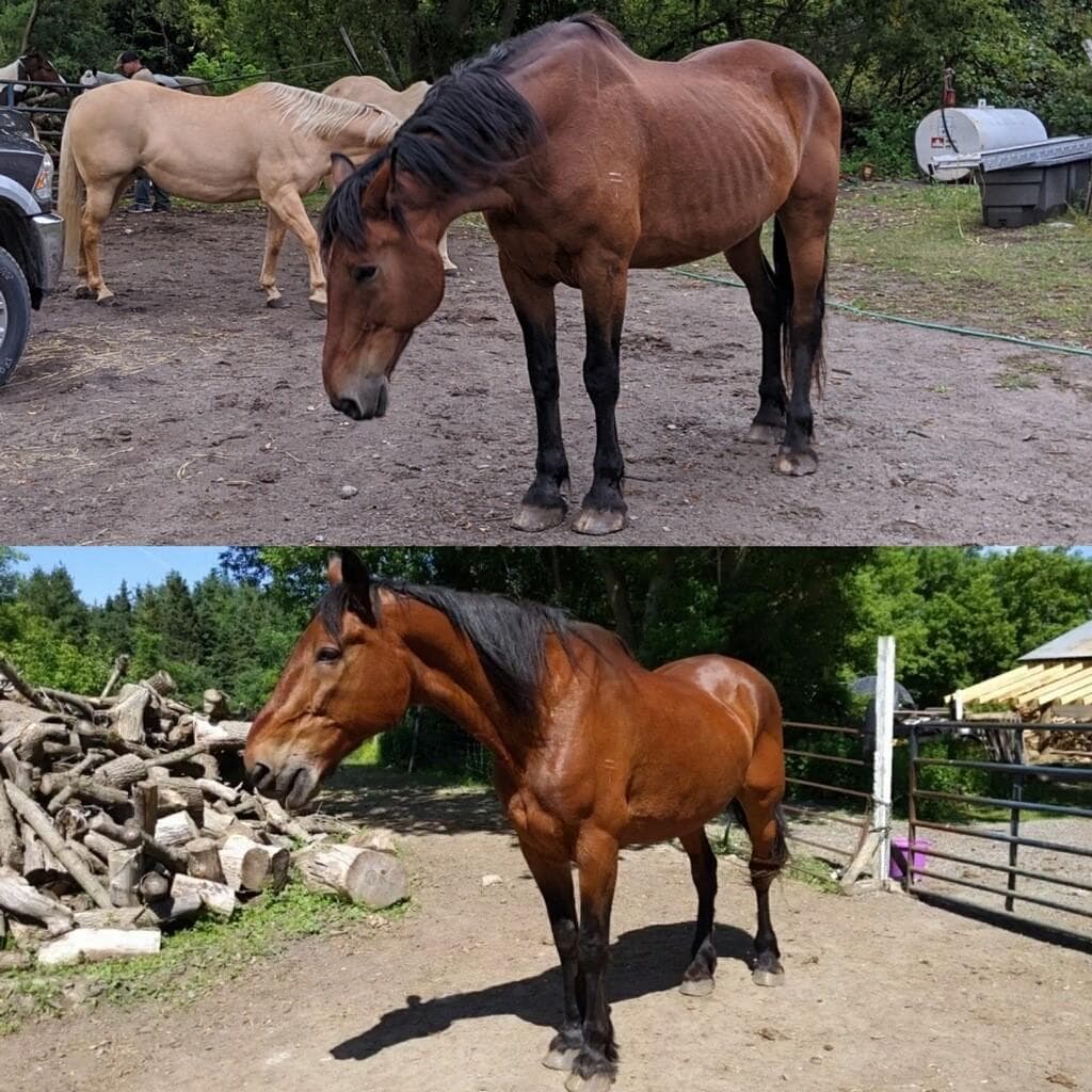 I don’t even know where to start! I have owned my 10y/o quarter horse since he was only 4 years old. He was a race horse in Alabama, and was brought to Ontario shortly after his racing career ended. When I first brought him home, we were riding 4-5 days a week which was just enough for him to melt away & lose a lot of weight, even though he was being fed twice a day, and had access to lots of hay. It didn’t take long for things to start spiraling downward, and next thing we knew, he was half the horse he was when I bought him. And just to top it off, he couldn’t seem to make any friends in any group he was put with, and was constantly beat up. I could tell that he was beyond stressed. I had never owned my own horse before, so it was a whole learning process for me and it was terrifying not knowing how to go about fixing it.