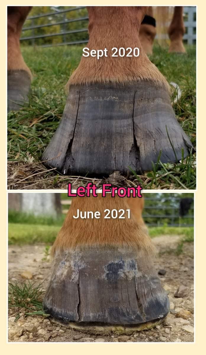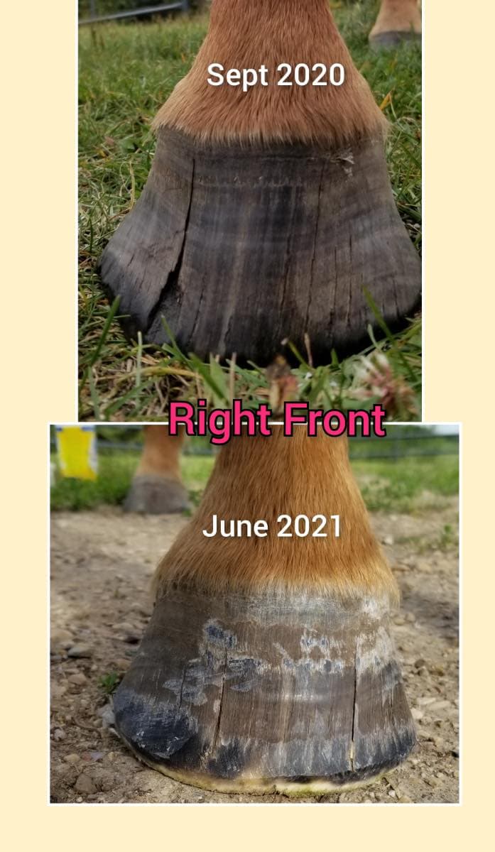 Several of us started our horses on Omneity in January and are just starting to see some results. I wanted to show you what their hooves both look like and ask if you have seen this before. One (the first pic) is a 20 year old Rocky Mountain and the other is my 18 year old Icelandic (2nd pic)