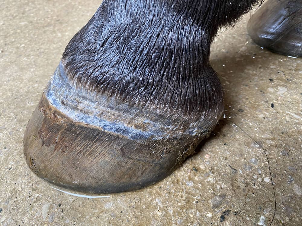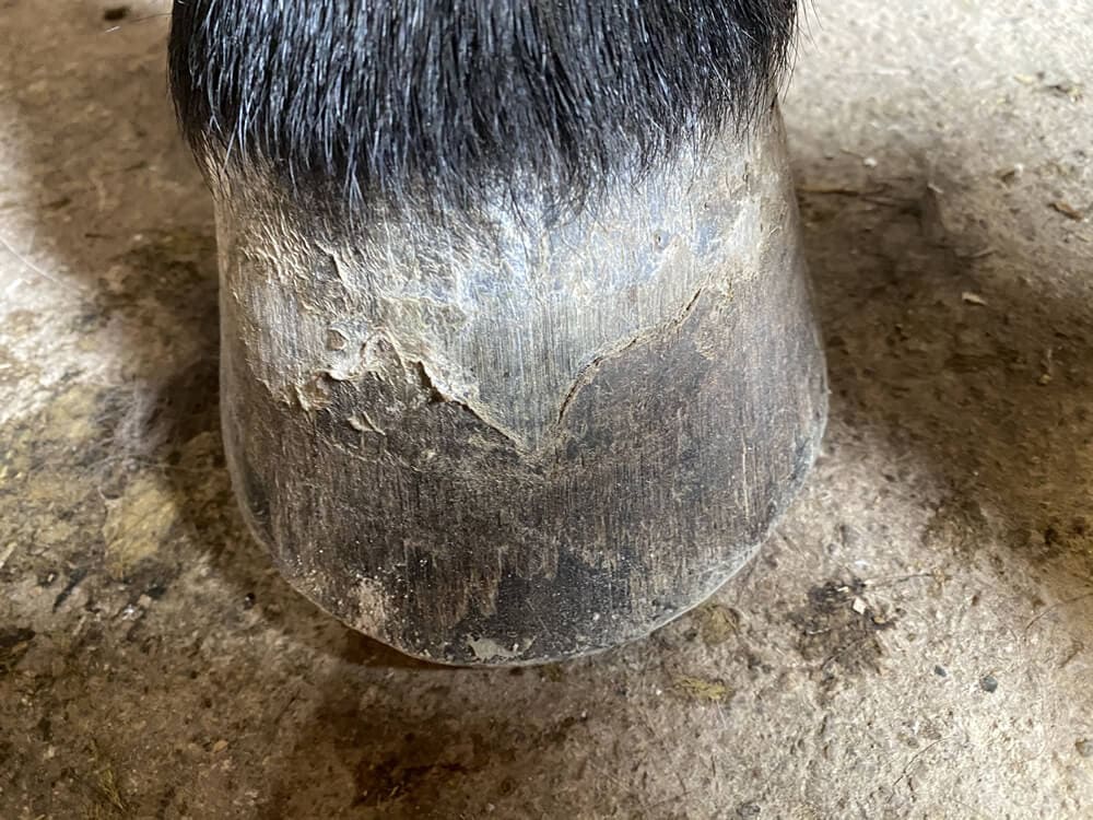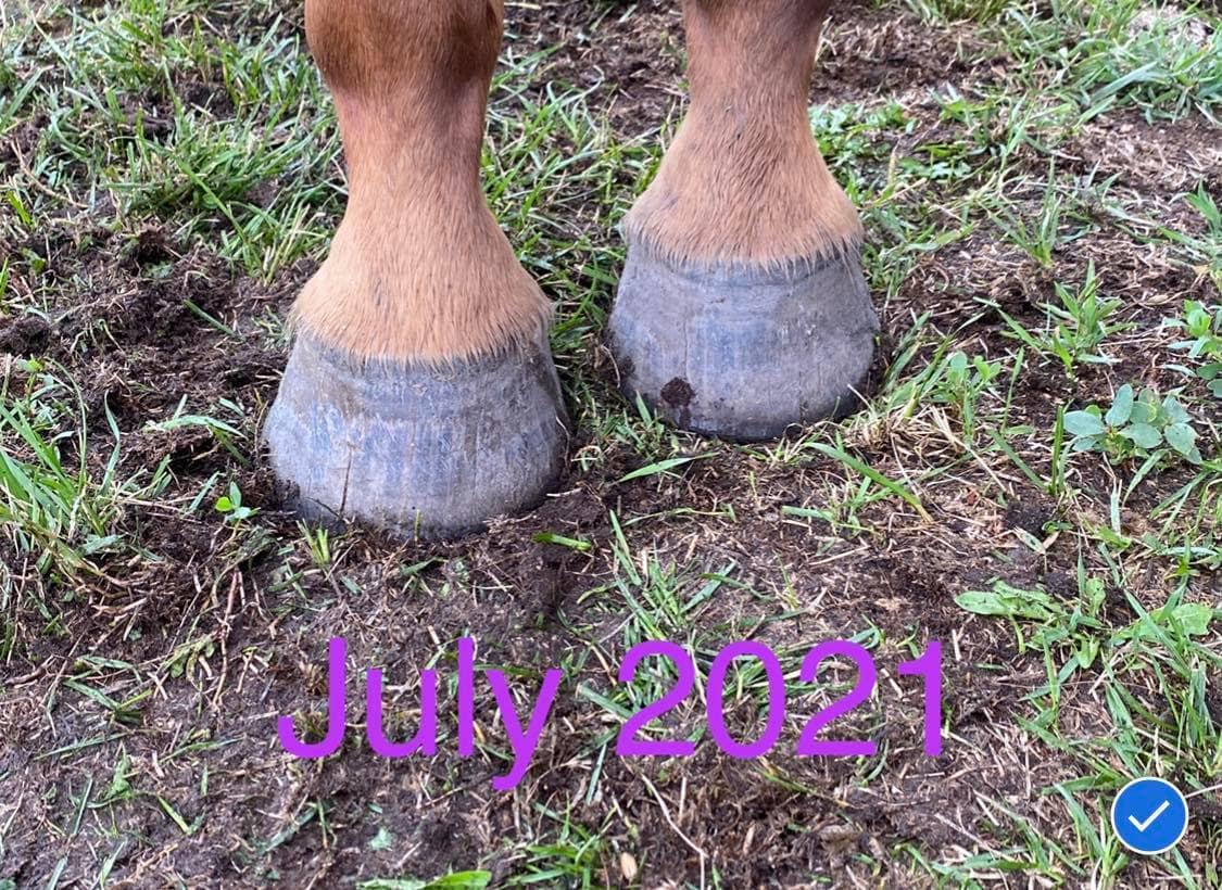 Peanut has had a history of having poor hoof condition since I purchased him as a 4 year old, 5 years ago. This horse has been on a strict 5-6 week trimming schedule (at one point it was every 3-4) weeks to try and combat the continuous flaring and cracking. By the time 5 or 6 weeks rolled around his feet looked completely neglected… talk about frustrating!