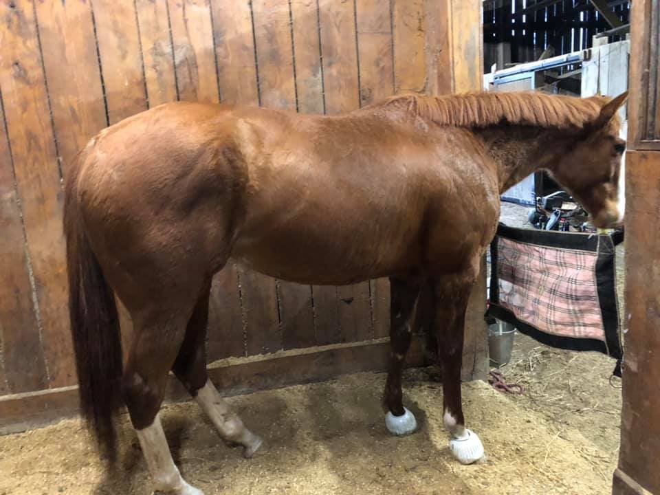 For anyone having similar issues with transitioning post racetrack. I cannot recommend Mad Barn products enough. She was a vicious stall weaver and a total fence chewing beaver out in the pasture when she first arrived. She’s been on their Omneity and Visceral for just over 5 weeks now and she’s really blossomed on it.