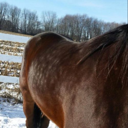 Sam is a horse that’s very hard on himself when traveling to go race. When discussing his need for something to help him stay calm on race day as well as something to help his body recuperate from the stress, AJ immediately suggested Visceral. I noticed a difference in his appetite within 2 weeks & now, after 6 weeks, the difference in his appearance is more than apparent; carrying more weight than ever, his coat shines and he is covered in dapples in mid January! His last race was his least stressed outing yet, his best performance in months & not a morsel of food was left uneaten following race day.