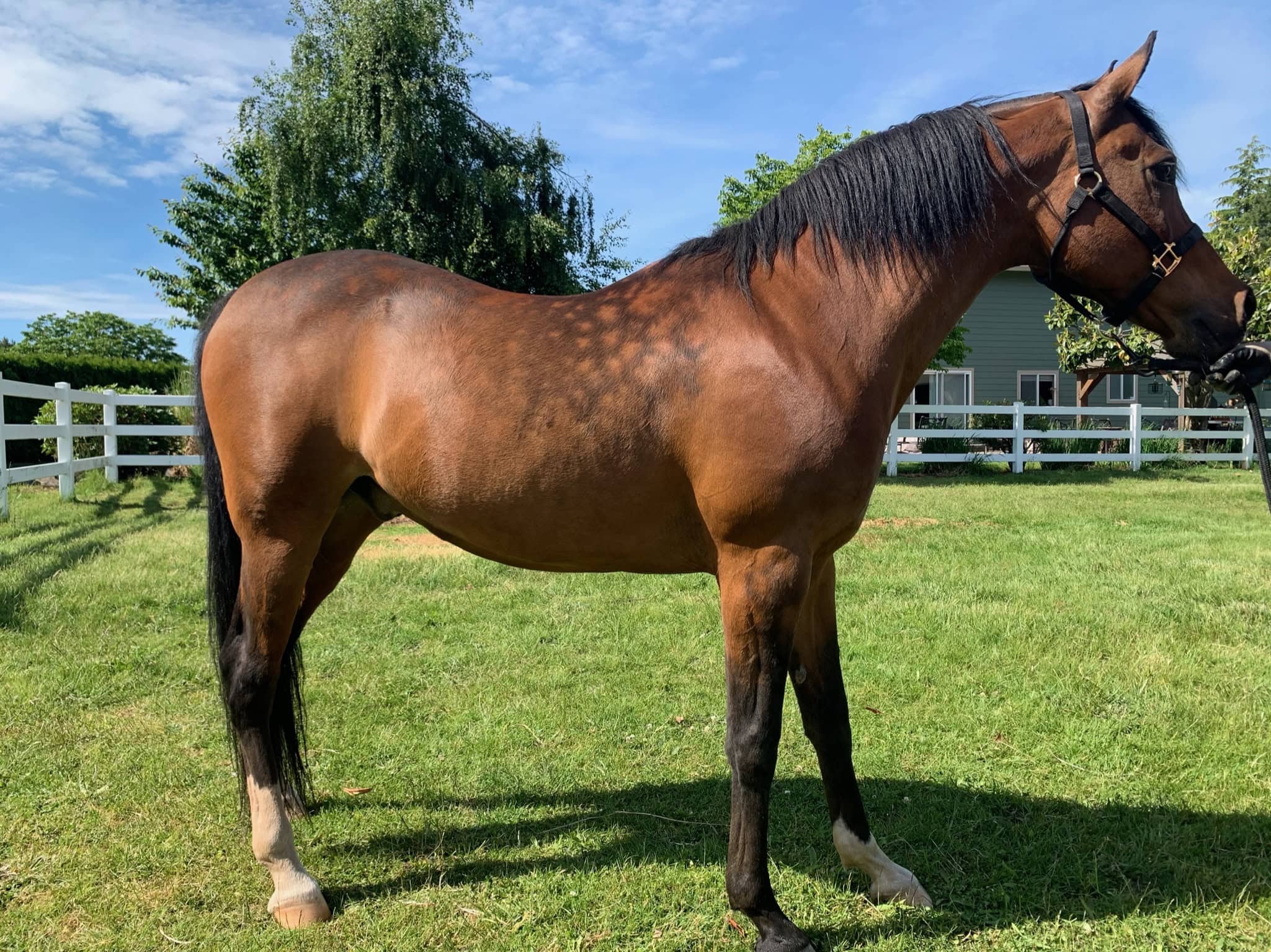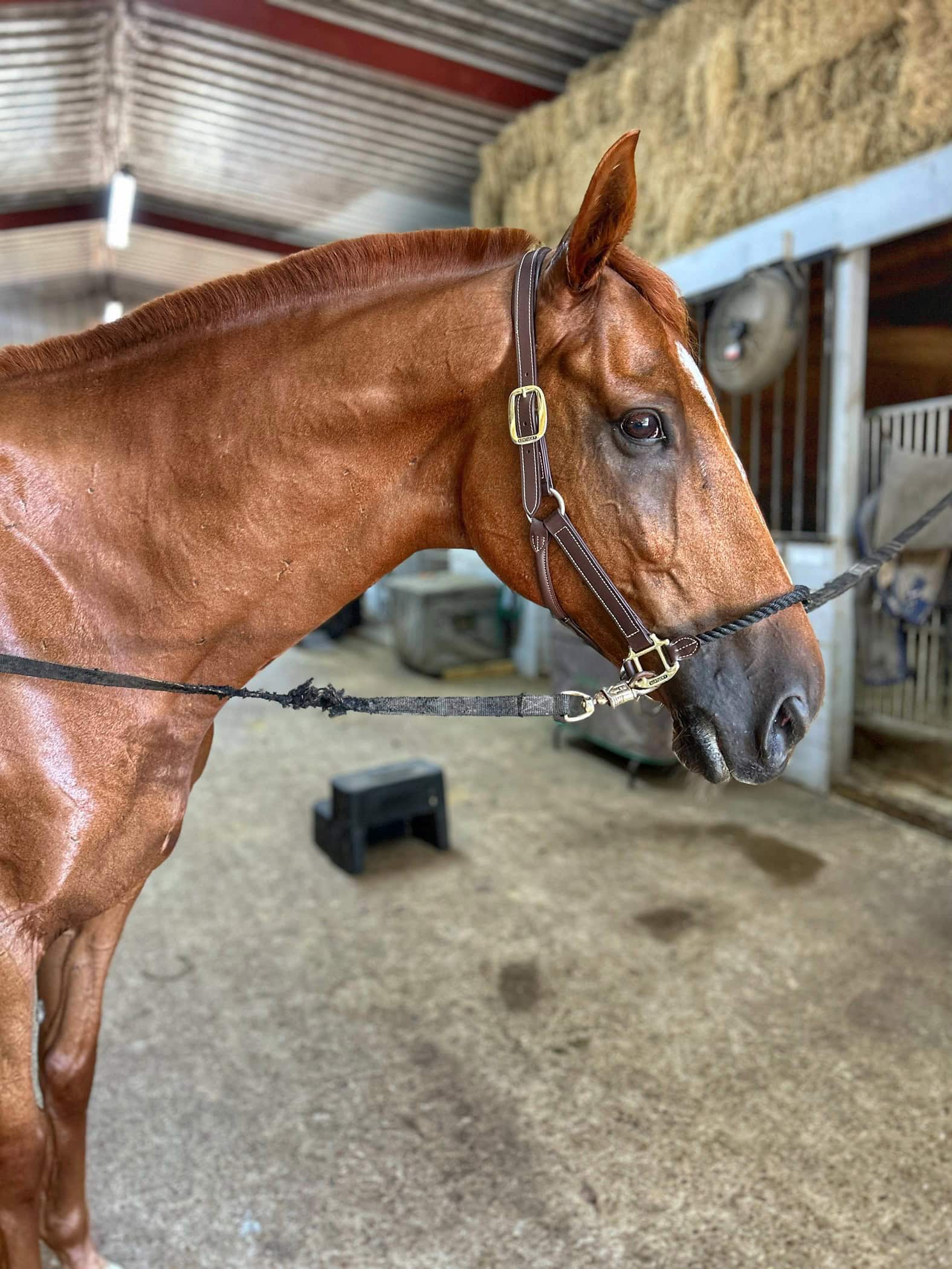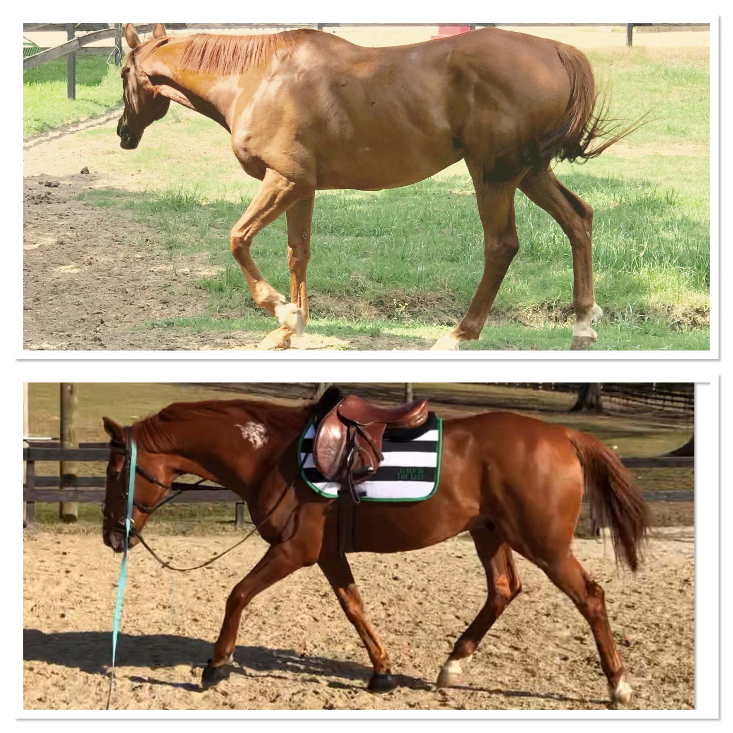 From being a skinny, unsound (Horrible Feet) retired race horse to a healthy, shiny & Sound, up & coming hunter/jumper! Thanks Mad Barn! Omneity has been a huge help in our journey!