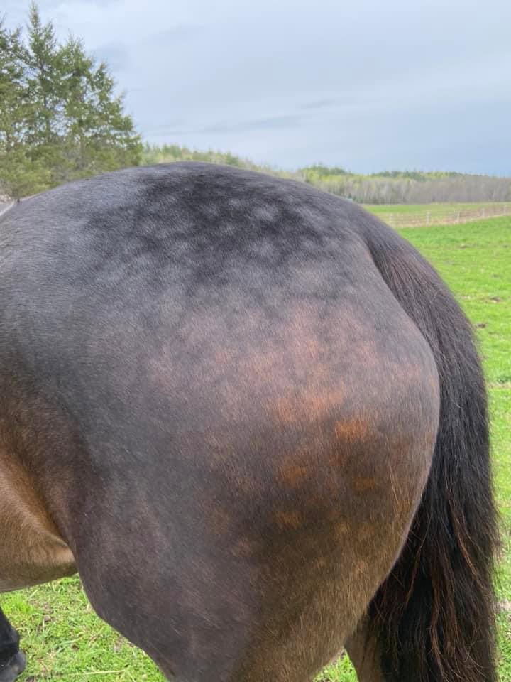Where to start! Grace is a 18’1 1900 lb American Drum horse that has sweet itch and allergy related inflammation.
