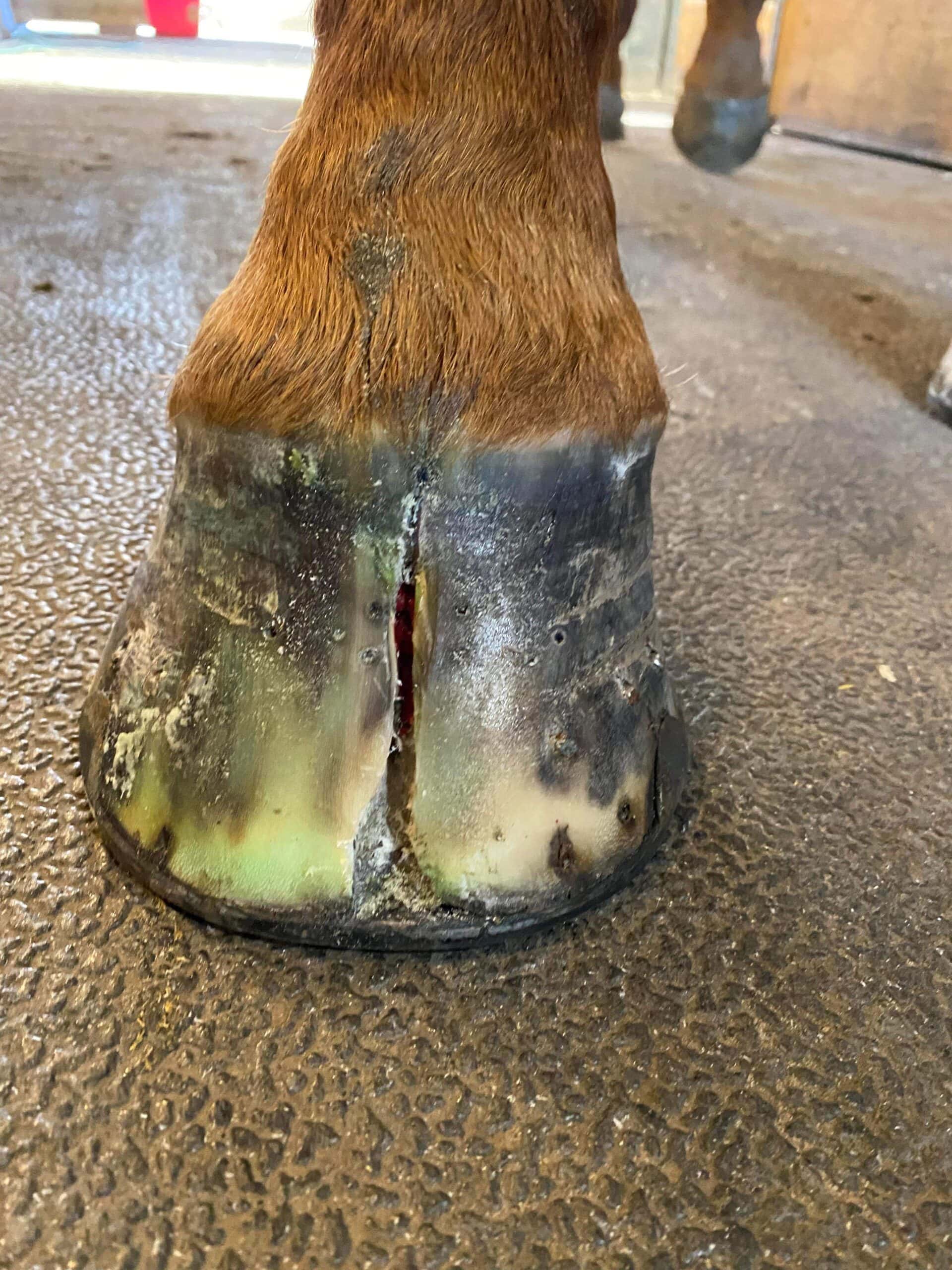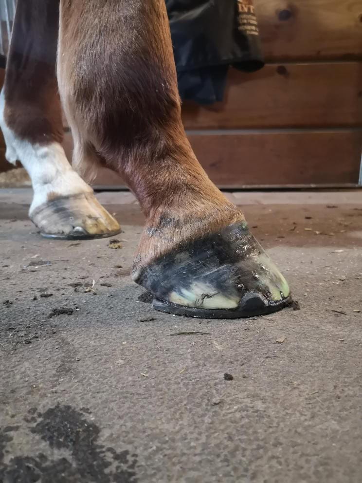 I had to remove shoes because my horses feet were falling apart in them. The Omneity product has helped the hooves heal in a fairly short time frame. I am having less trouble with thrush as well. I have him in boots for riding now. I highly recommend the Omneity product. The folks at Mad Barn have been very helpful in my journey of learning about horse nutrition.
