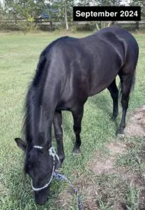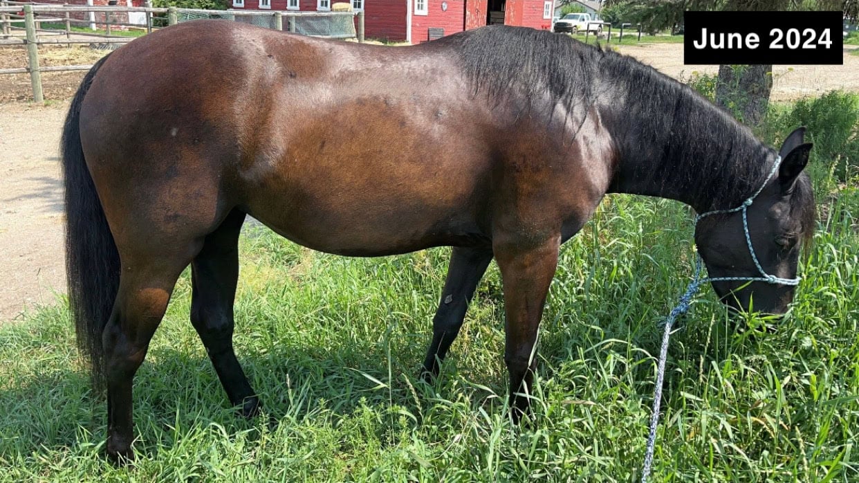 My 2-year-old mare, Blue, is thriving on Mad Barn. I began supplementing Spirulina and Jiaogulan in the spring of 2024, when she began coughing quite frequently due to dustier conditions. Within two weeks, I noticed an improvement in her respiratory function. Since then, I haven’t noticed her develop a cough as a result of dusty hay or a dusty environment! I added Chasteberry to her diet in May. I hoped to aide in stabilizing her mood, as starting heat this year threw her for a loop, and she has been so easy to manage during her heat cycles since introducing the supplement! The most obvious improvement, however, would be when I made the switch to Omneity Premix in June of 2024. I was not happy with Blue’s coat condition; for a black mare, she was looking very red! I decided to try Omneity instead of the mineral I had been feeding to see if a mineral imbalance was contributing to her coat discolouration. By August, her coat was shiny and black, and my farrier commented on how her hooves were much healthier! In August, Blue wound up developing gastric ulcers, and I began feeding Visceral + to assist with the healing and help with prevention, and she has been doing great. Most recently, I have added W3 oil into her diet, and she loves it! It is very palatable; she is incredibly picky (she would only eat a specific brand of Camelina oil!), and W3 got her stamp of approval. I have also utilized the diet evaluation service offered by Mad Barn, and their nutritionists are so helpful and knowledgeable! All I want to do is do right by my horse, and it is wonderful to know she is getting the nutrients she needs. I love Mad Barn – the products and the service; you can tell Mad Barn is a company that CARES! Thank you Mad Barn!