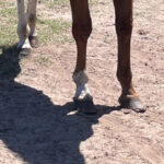 For a while, we were dealing with poor quality hooves with Ginger (coupled with inadequate farriery from someone I trusted). We had chronically underrun heels and the stereotypical “slipper feet”, with hooves that were too small for her size and cracks that the farrier determined needed to be dremeled out. I made a huge diet switch, changing to forage only, along with a new farrier. The difference was night and day. The Omneity allowed her to grow out a whole new hoof significantly faster than normal, and a much better, stronger foot. You can see a huge difference in the event lines too in the traditionally shod pictures vs the glue on shoe. Her feet became bigger, and she was much more comfortable moving around, going on to many successes in the show ring. Omneity was our saving grace!