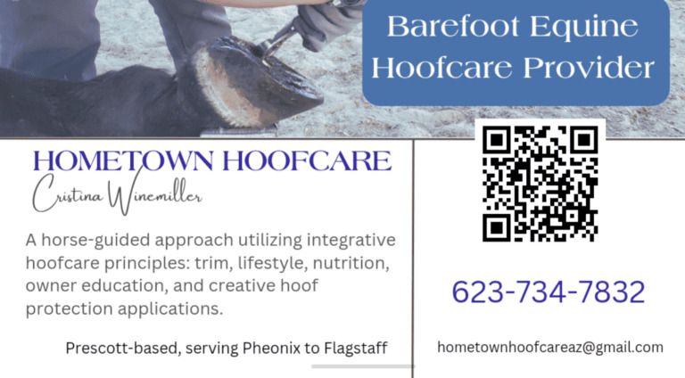 Area of Expertise: Barefoot trims, glue-on composite shoes, casting, Hoof Armor, Glue-u, boot fitting, teaching trims