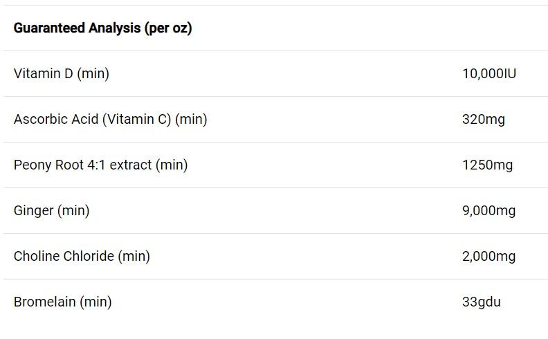 Ingredients: Magnesium Proteinate, Ginger, Citrus Bioflavonoids, L-Ascorbyl-2-Polyphosphate (Vitamin C), Choline Chloride, Corn Starch, Peony, Bromelain, Cholecalciferol (Vitamin D3)
