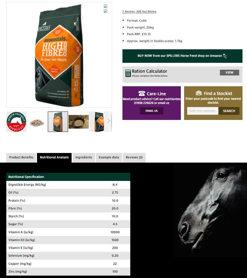 High Fibre Cubes from Spillers Feed is a cereal-free cube with a blend of concentrated fibers. Fiber sources include oatfeed, wheatfeed, and straw.