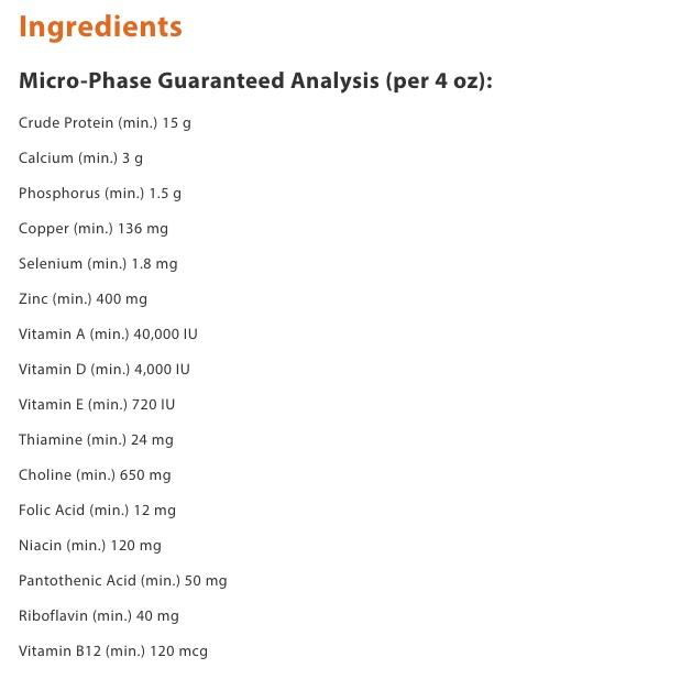 Kentucky Performance Products Micro-Phase is a vitamin and trace mineral supplement designed for horses on forage-only diets or those fed concentrate feeds below the recommended feeding rate. It is an alfalfa-based pelleted supplement containing a mix of organic and inorganic minerals.