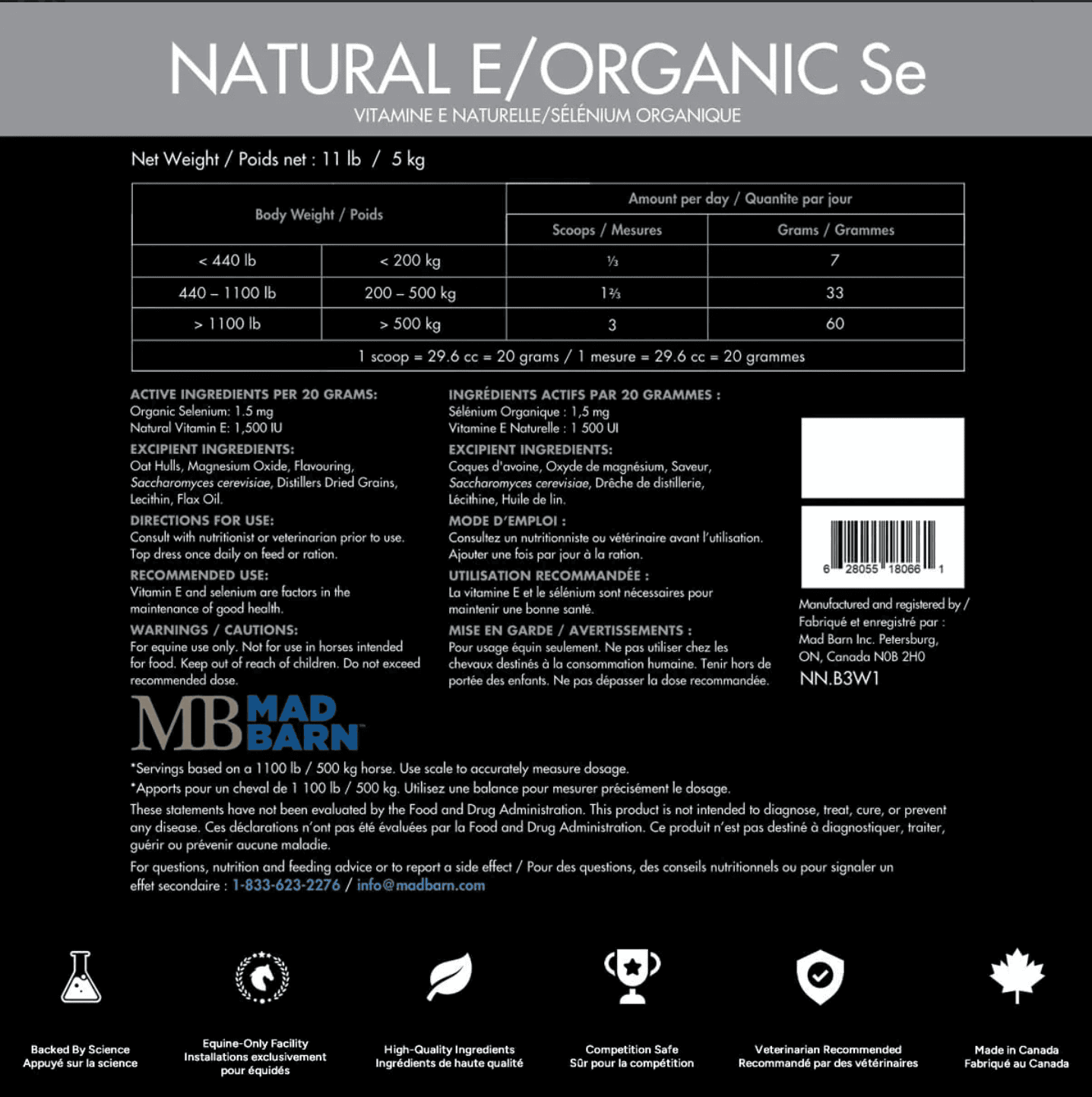 Natural E/Organic Se is a pelleted supplement providing organic Selenium yeast and natural Vitamin E. These two nutrients are important antioxidants that support muscle function and anti-inflammatory pathways.