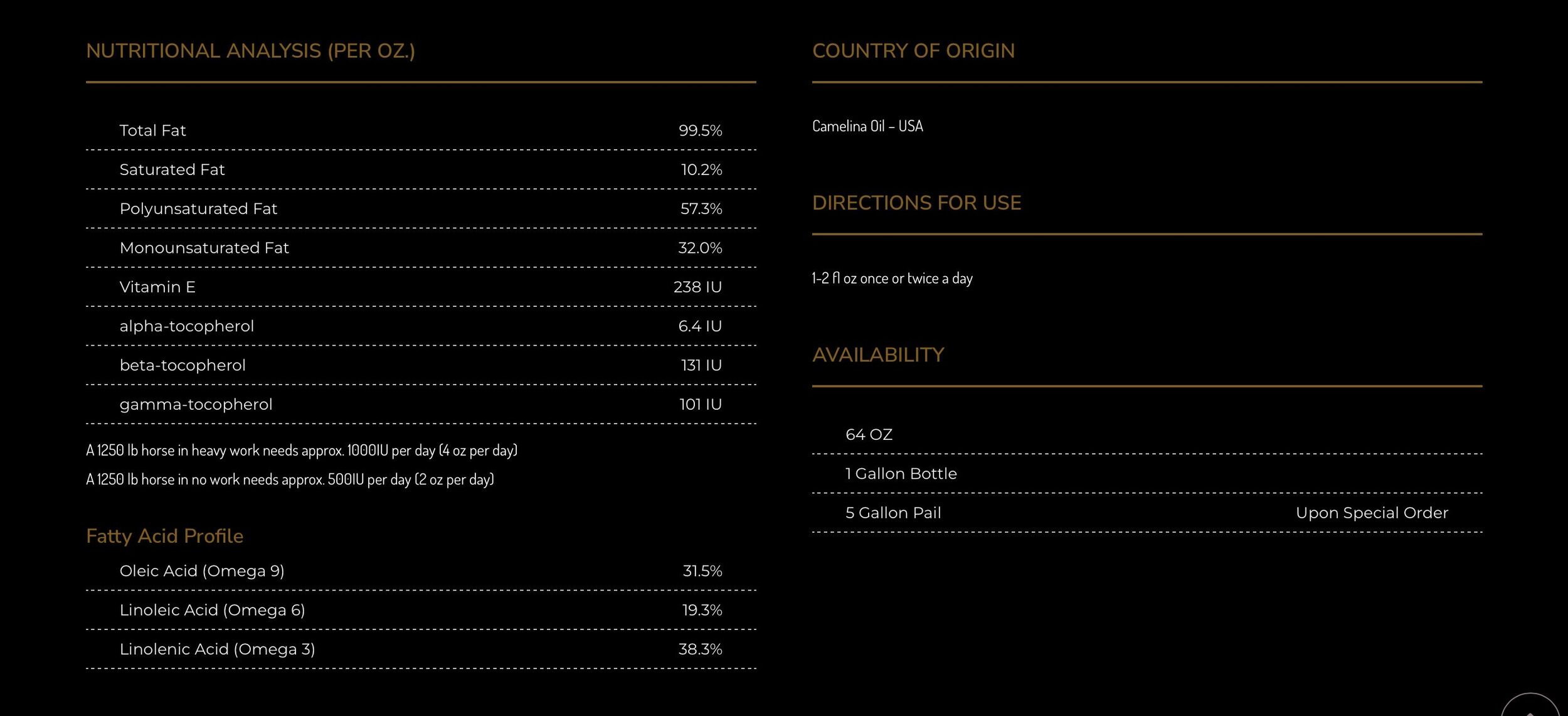 Premium Cold-Pressed Camelina Oil Equine (Wild Gold)