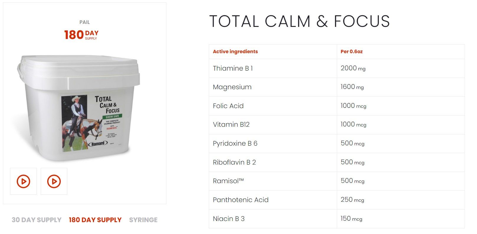 | BiotinBiotin (vitamin B7) is important for hoof growth and integrity, as well as skin and coat quality in horses. | -- | ppm | -- | mg | ||