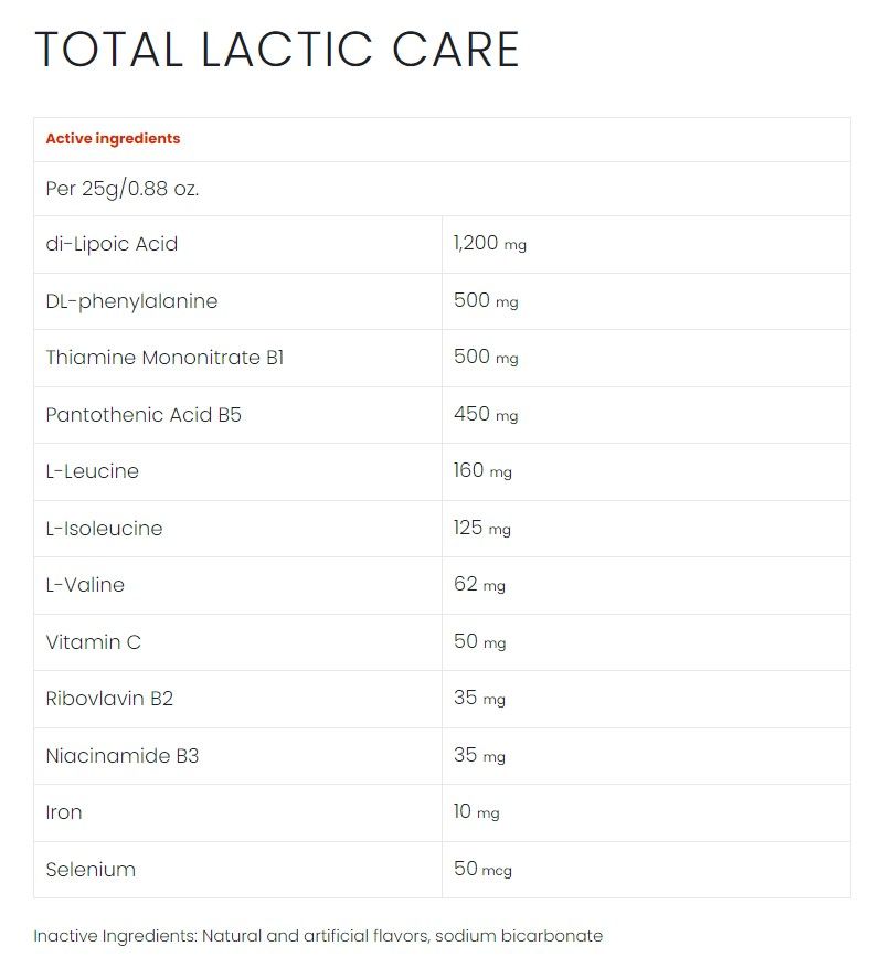Total Lactic Care from Ramard is a supplement that is meant to help muscles after performance. It can help with muscle fatigue, cramping, and tying up. It contains vitamins, minerals, and amino acids.