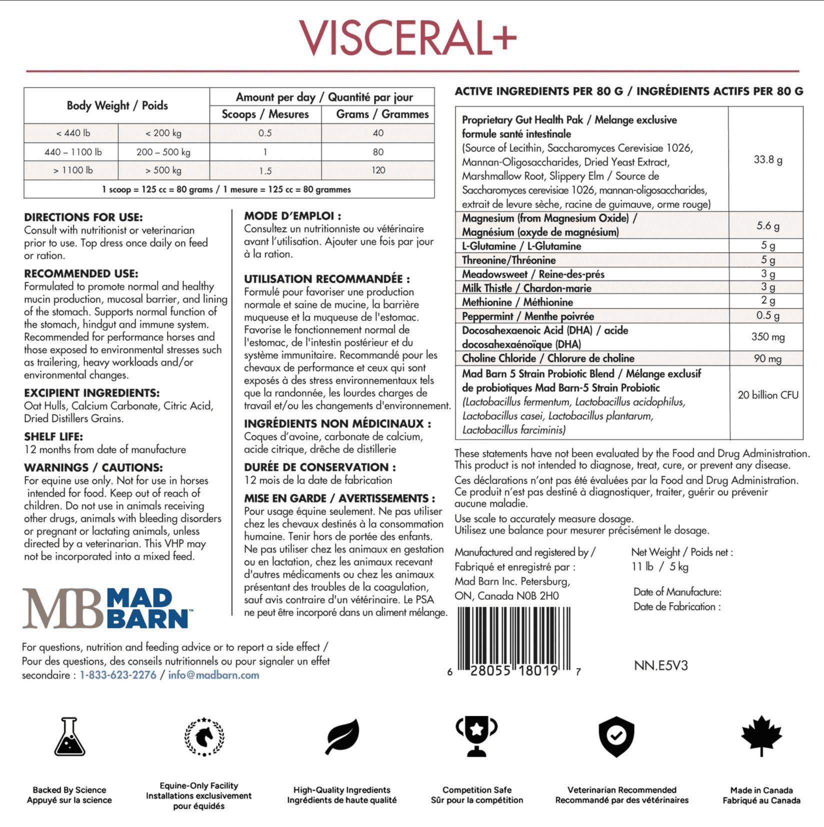 Visceral+ by Mad Barn is a pelleted supplement to be used for horses with gastric health concerns. It is designed to maintain stomach and hindgut health and to support the immune system.