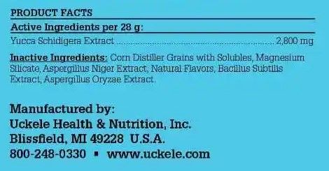 Ingredients: Yucca schidigera Extract, Corn Distillers Dried Grains With Solubles, Magnesium Silicate, Dried Aspergillus niger Fermentation Product, Natural Flavors, Bacillus subtilis, Dried Aspergillus oryzae Fermentation Product
