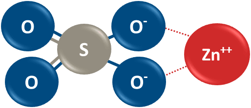 In the image below, note that there are no green C’s representing carbon atoms in the molecular structure for zinc sulphate.