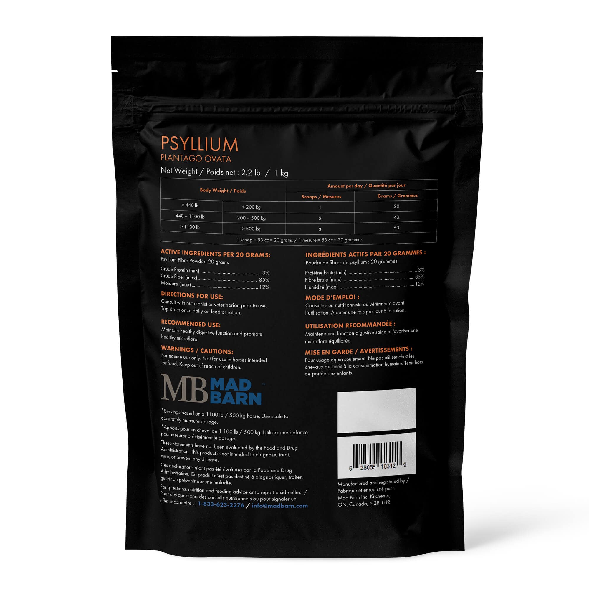 Packaged by: Mad Barn Inc., Kitchener, ON, N2R 1H2, Canada.