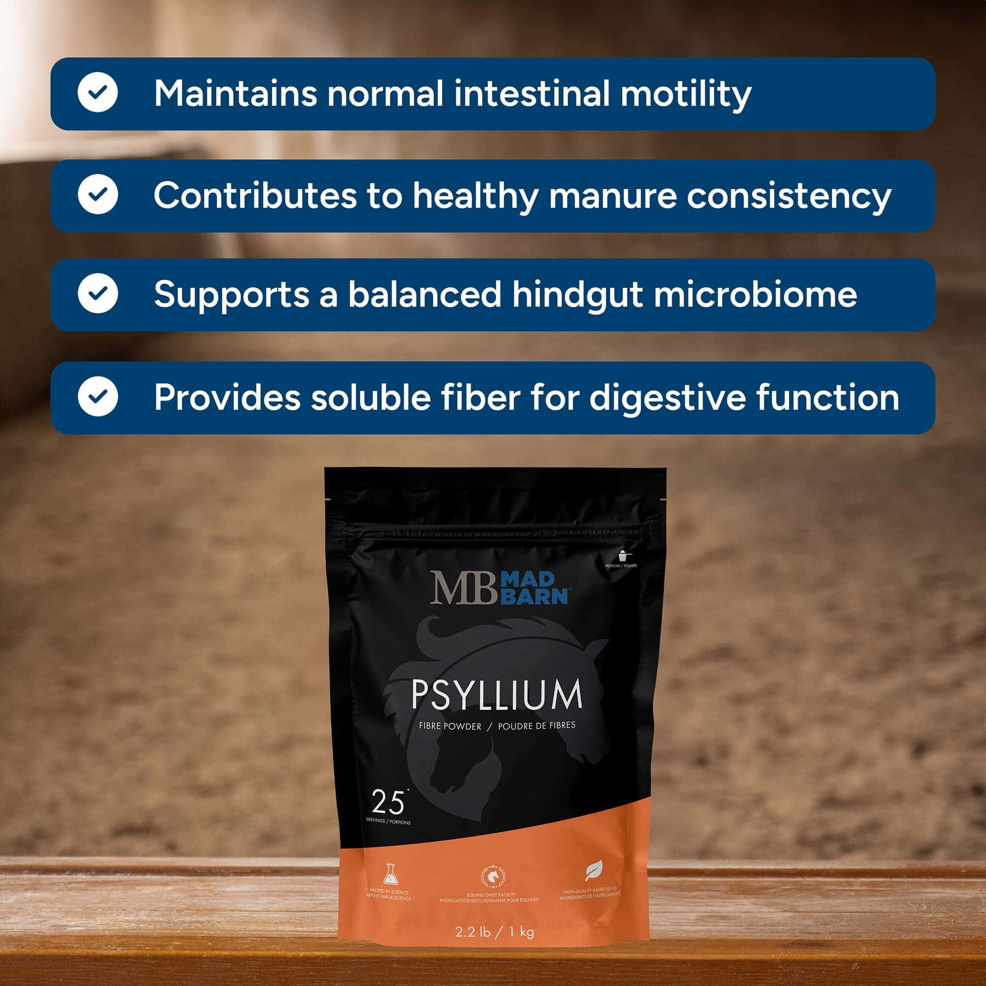 Horses that may benefit from psyllium include those with inconsistent manure, those grazing in sandy or dry conditions, horses undergoing diet changes, and horses under travel, training, or management stress that can affect digestion. Psyllium is also commonly used for metabolic horses because it is low in sugar and starch, and it can be useful in performance programs where supporting hydration and digestive stability is a priority.